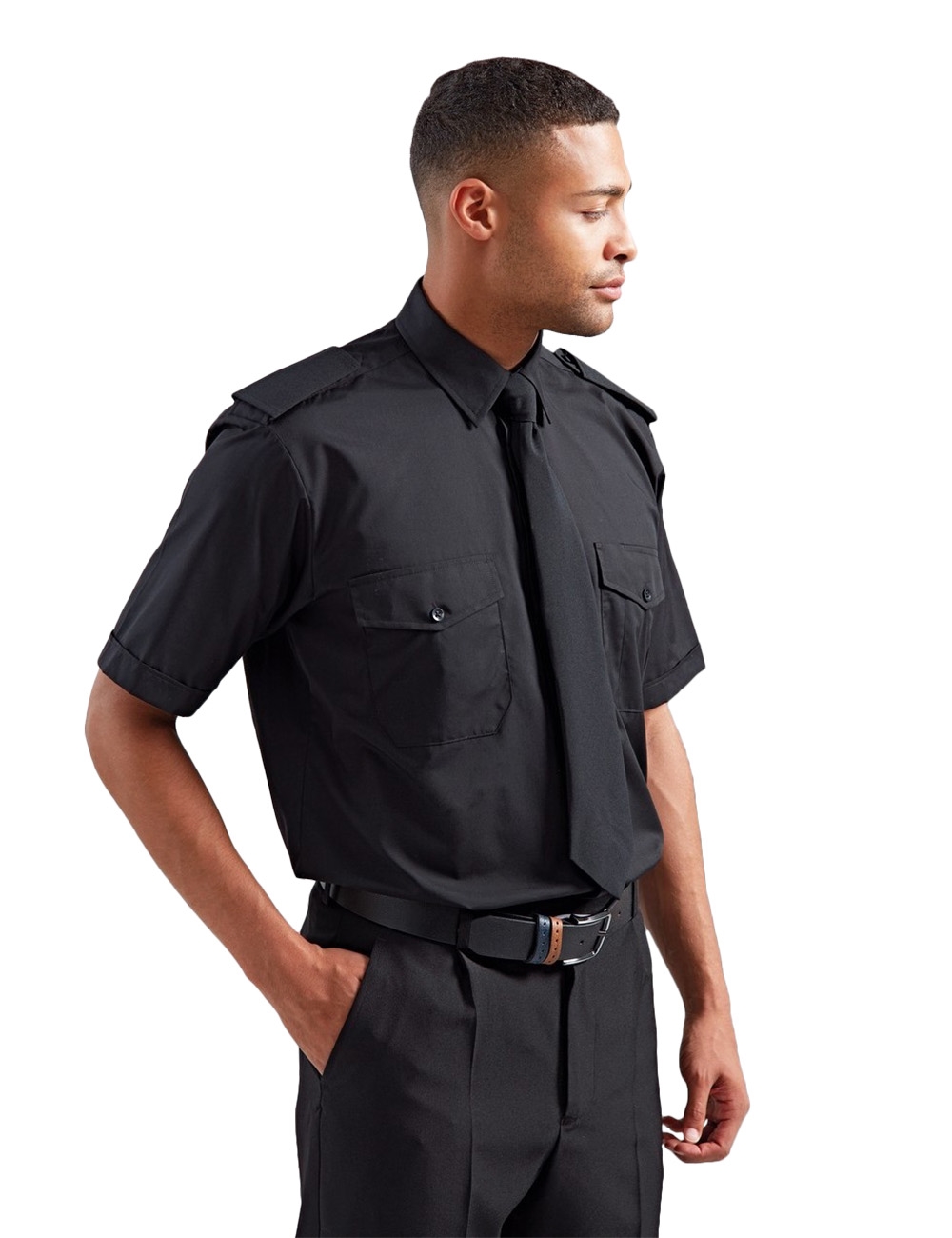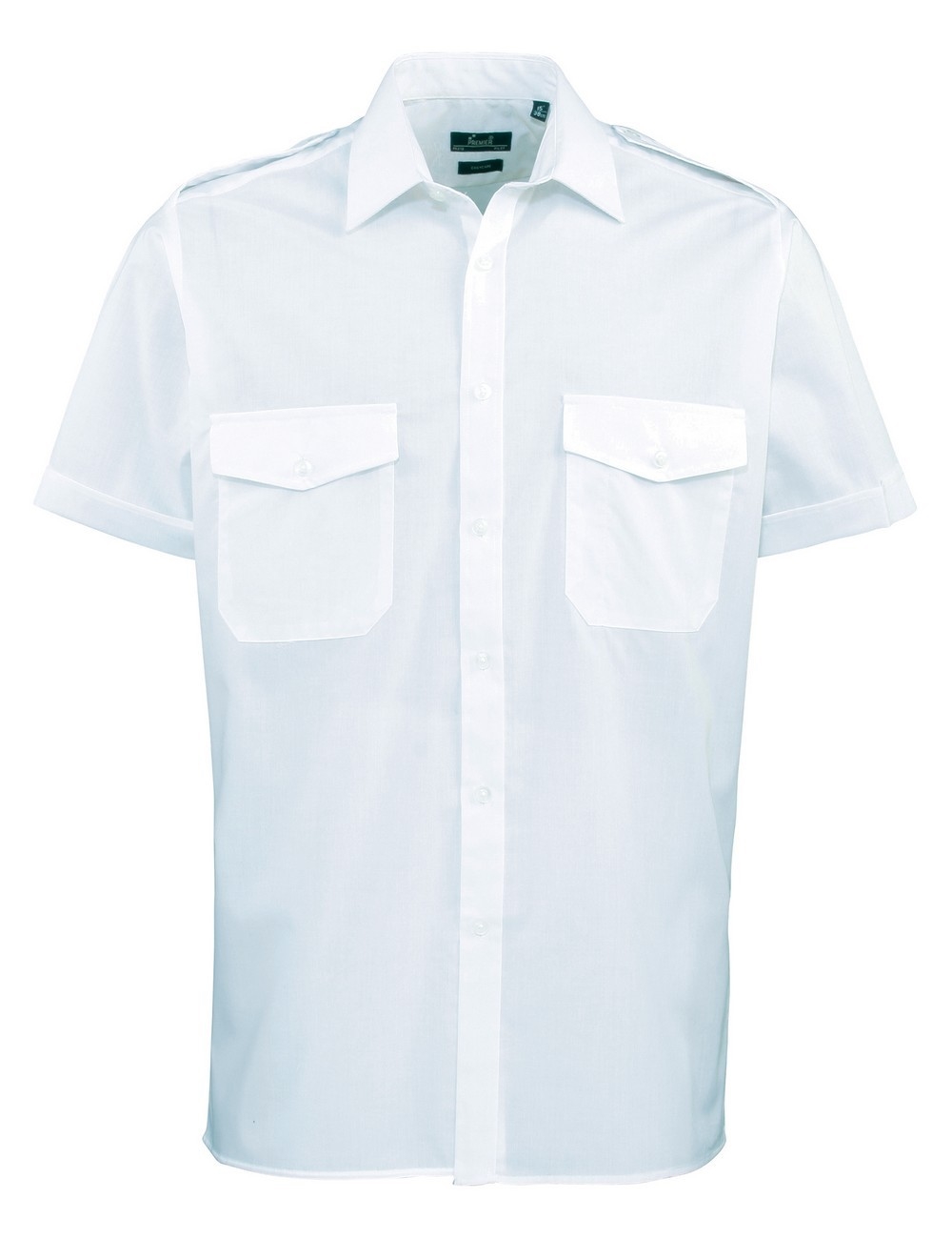 Περιγραφή: Ανδρικό Πουκάμισο με επωμίδες κοντομάνικο Σύνθεση : 65% Πολυέστερ - 35% Βαμβάκι Ποπλίνα, 105g/m² Λεπτομέρειες: Κλασικός γιακάς - 2 τσέπες με καπάκι με κουμπιά στο στήθος - Θήκη στυλό στην αριστερή τσέπη - Καρτέλες για εφαρμογή επωμίδων στους ώμους.