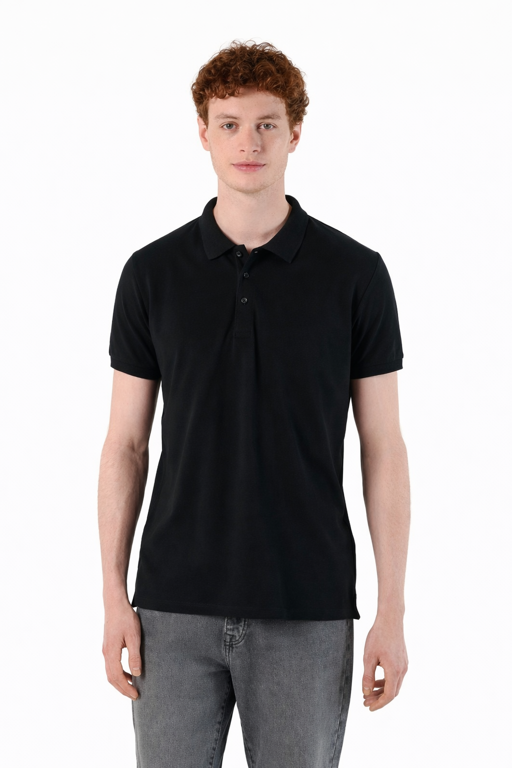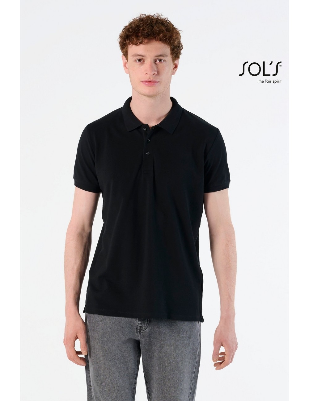Με κοντά μανίκια πικέ 220 γρ - 95% ringspun βαμβάκι πενιέ - 5% ελαστίνη εφαρμοστή γραμμή, πατιλέτα με δύο κουμπιά στο ίδιο χρώμα, πλαϊνές σχισμές, πλαϊνές ραφές, ριπ γιακά και μανίκια και φακαρόλα στο λαιμό.