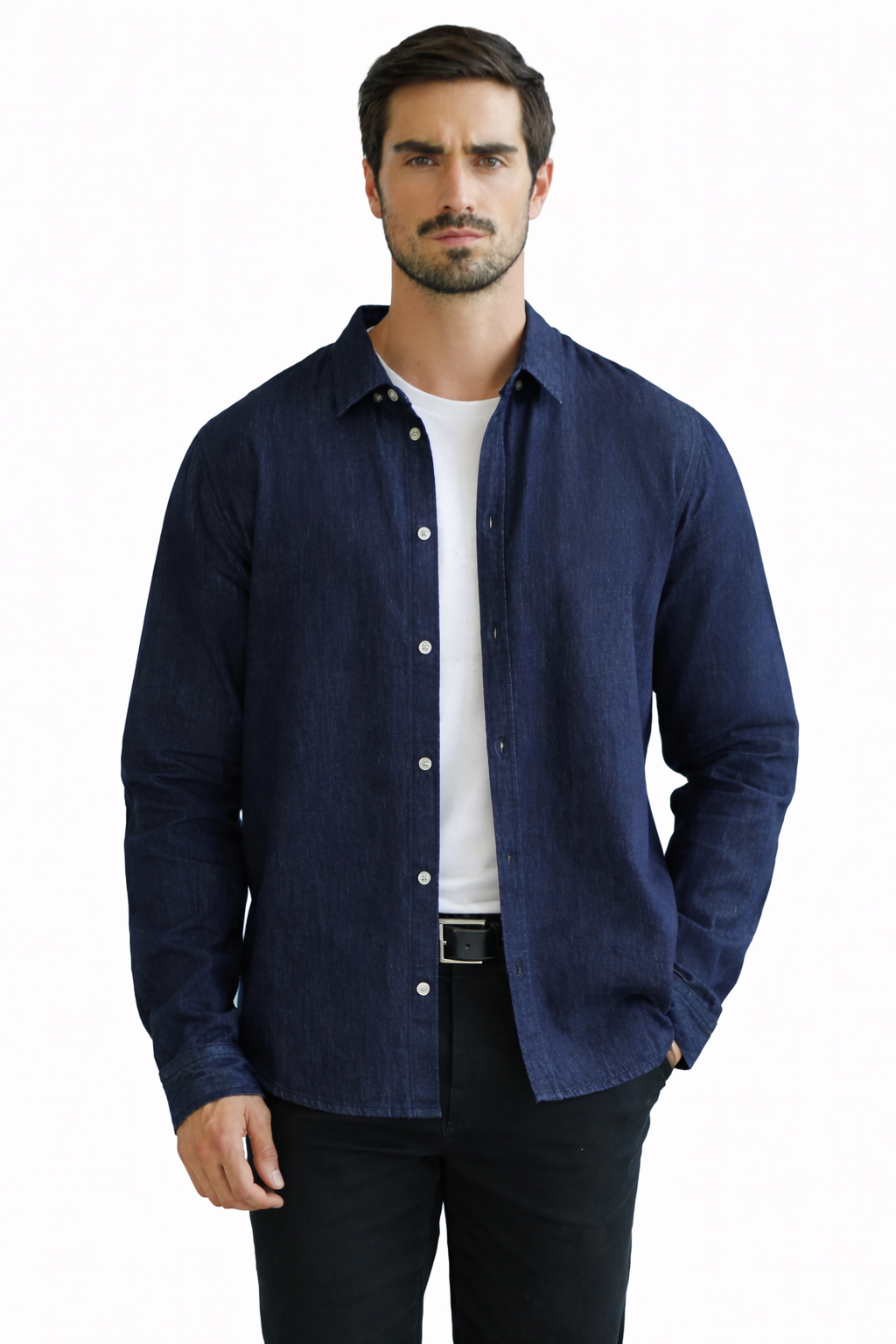 Σύνθεση : Denim 5 oz - 100% Βαμβάκι - 210g/m². Λεπτομέρειες: Μακριά μανίκια - Γιακάς με κρυφά κουμπιά - Μανσέτες με κουμπιά - Αμερικάνικη πατιλέτα με 7 κουμπιά σε εκρού χρώμα.