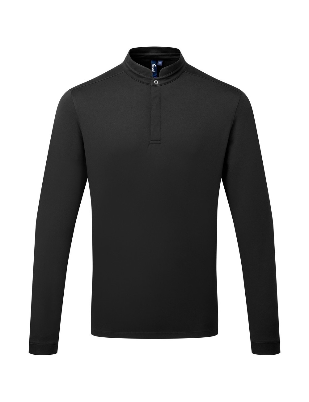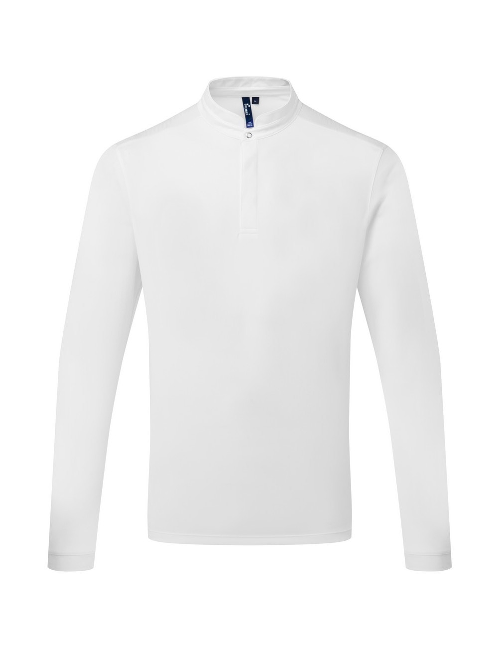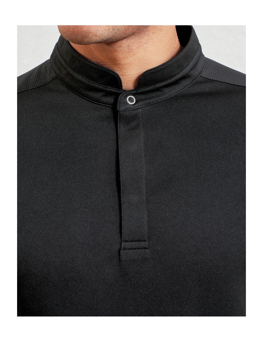 Μπλούζα με όρθιο γιακά σε unisex γραμμή , Σύνθεση : 155g/m² - 100% Ανακυκλωμένο πολυέστερ. Λεπτομέρειες: Μακριά μανίκια – Γιακάς τύπου μάο – Κρυφό κουμπί στο κολάρο – Τσέπη για στυλό στο αριστερό μανίκι – Ελαστικό ριπ στις μανσέτες – Πλαϊνά σκισίματα – Πλάτη από διαπνέον δίχτυ. Ενδείκνυται για κρύα κουζίνα και για πάσο.