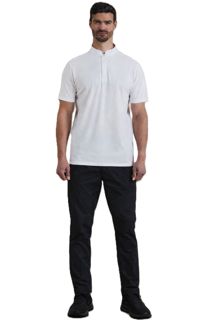 Σύνθεση : 155g/m² - 100% Ανακυκλωμένο πολυέστερ. Λεπτομέρειες: Κοντά μανίκια – Γιακάς τύπου μάο – Κρυφό κουμπί στο κολάρο – Τσέπη για στυλό στο αριστερό μανίκι – Πλαϊνά σκισίματα – Πλάτη από διαπνέον δίχτυ. Ενδείκνυται για κρύα κουζίνα και για πάσο.