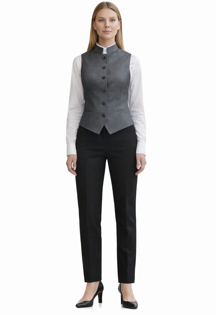 Γιλέκο σέρβις γυναικείο με όρθιο γιακά , ύφασμα φρεσκό .