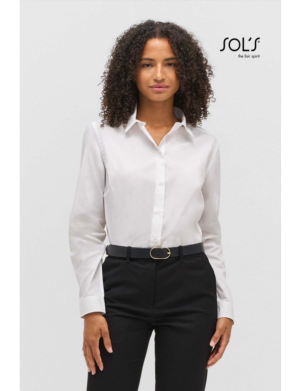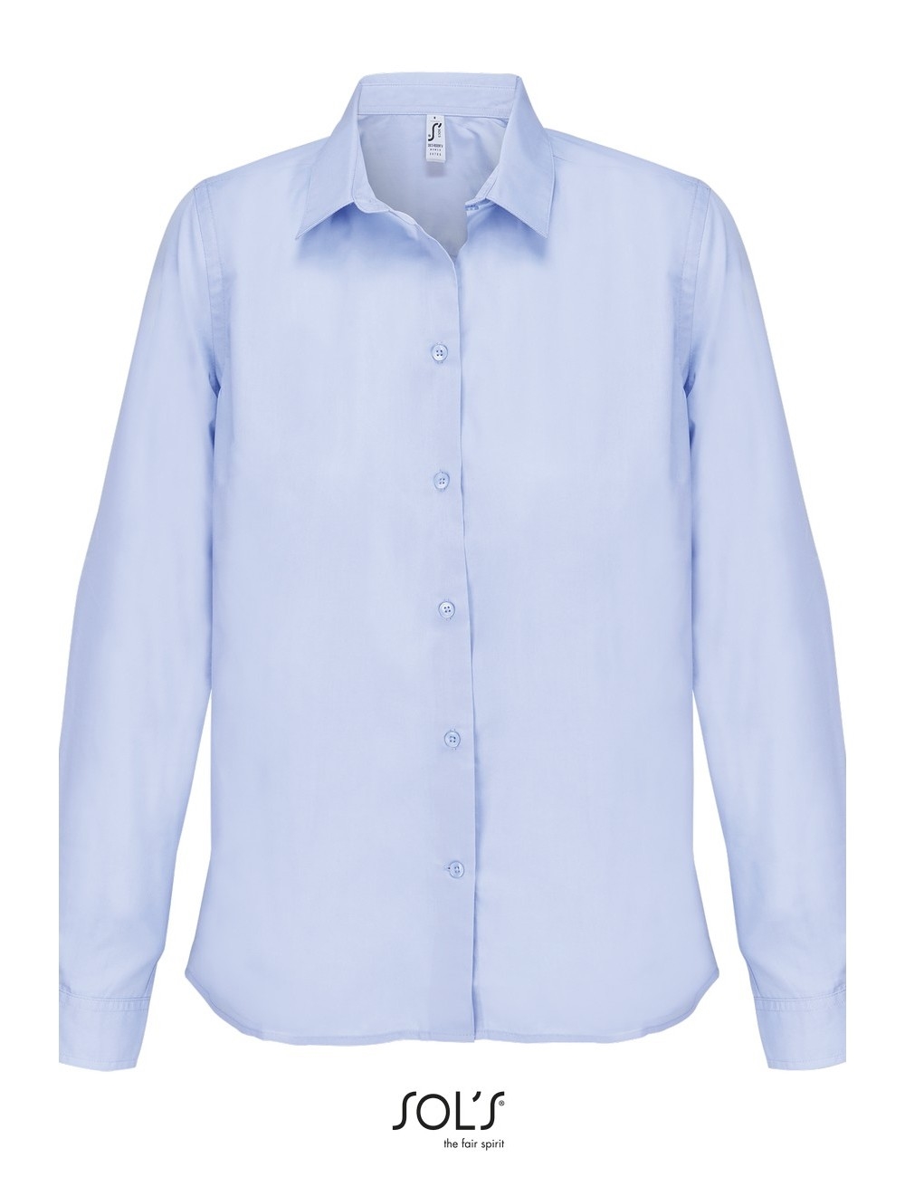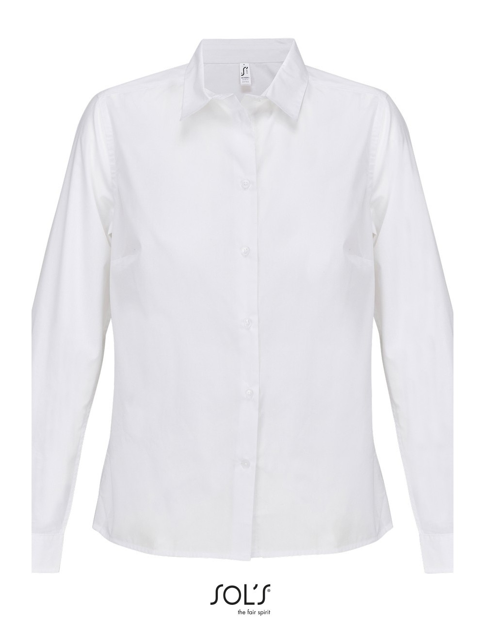 Σύνθεση : Ποπλίνα - 65% Ανακυκλωμένο πολυέστερ - 35% Βαμβάκι, Βάρος: 110g/m². Λεπτομέρειες: Μακριά μανίκια - Απλές μανσέτες - Πατιλέτα με 7 κουμπιά στον ίδιο τόνο - Γυναικεία εφαρμοστή γραμμή.