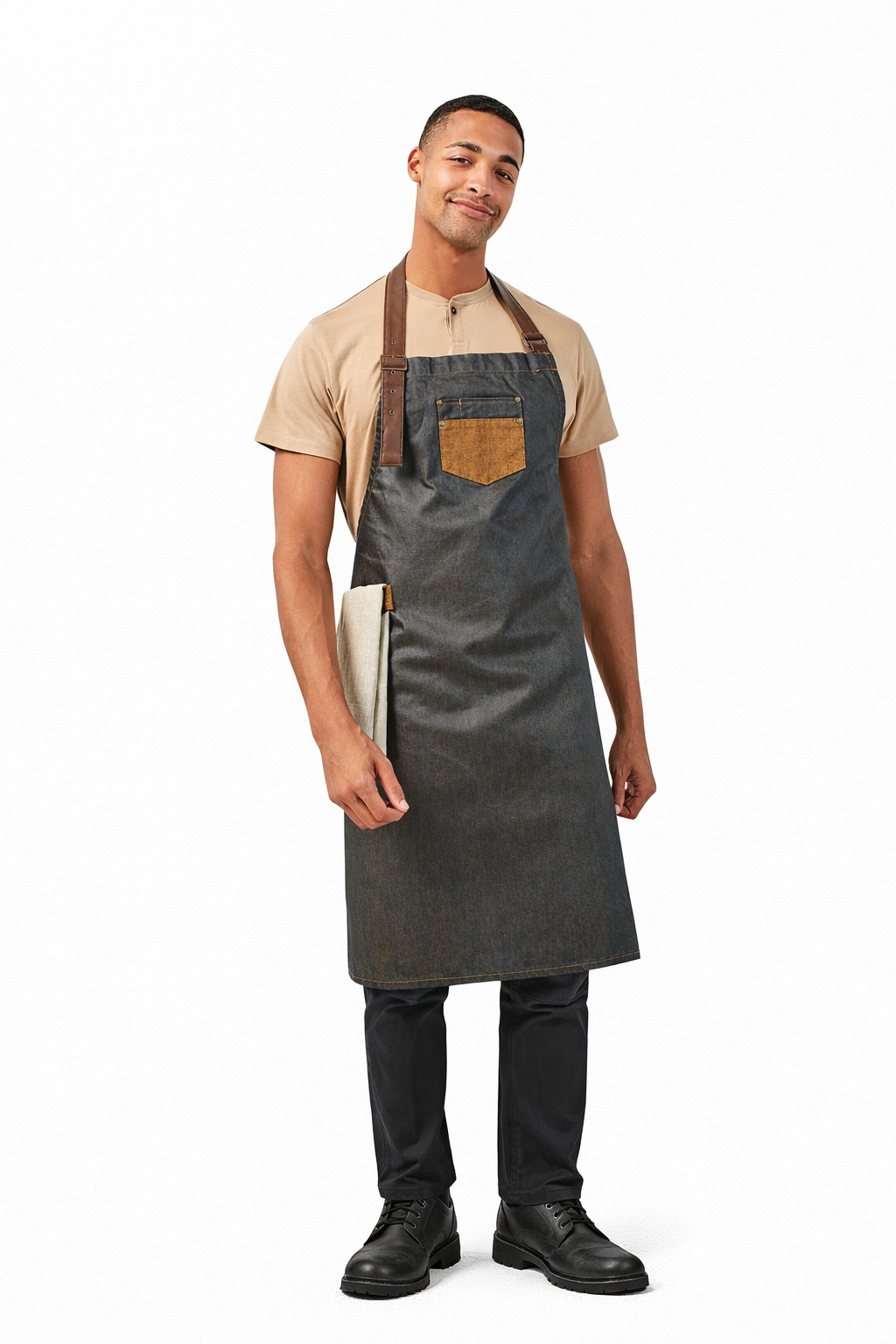 Σύνθεση: 100% Βαμβάκι Denim με ακρυλική επίστρωση, 350g/m² Λεπτομέρειες: Λαιμόκοψη και δέσιμο μέσης από δερματίνη - Ρυθμιζόμενη λαιμόκοψη με μεταλλική αγκράφα - Ανθεκτικό φινίρισμα με κερί, χαρίζοντας υδατοαπωθητική επιφάνεια - Μπροστινή τσέπη τζιν (13x13εκ.) με εξώραφα Διαστάσεις: 86 x 72εκ.