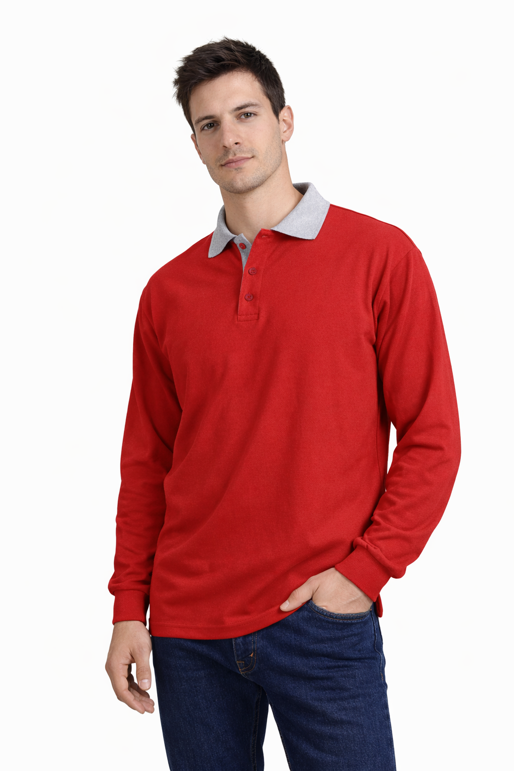 Μπλουζάκι πόλο με μακρύ μανίκι δίχρωμο από ύφασμα πικέ. Διατίθεται κατόπιν παραγγελίας σε πολλά χρώματα και μεγέθη.