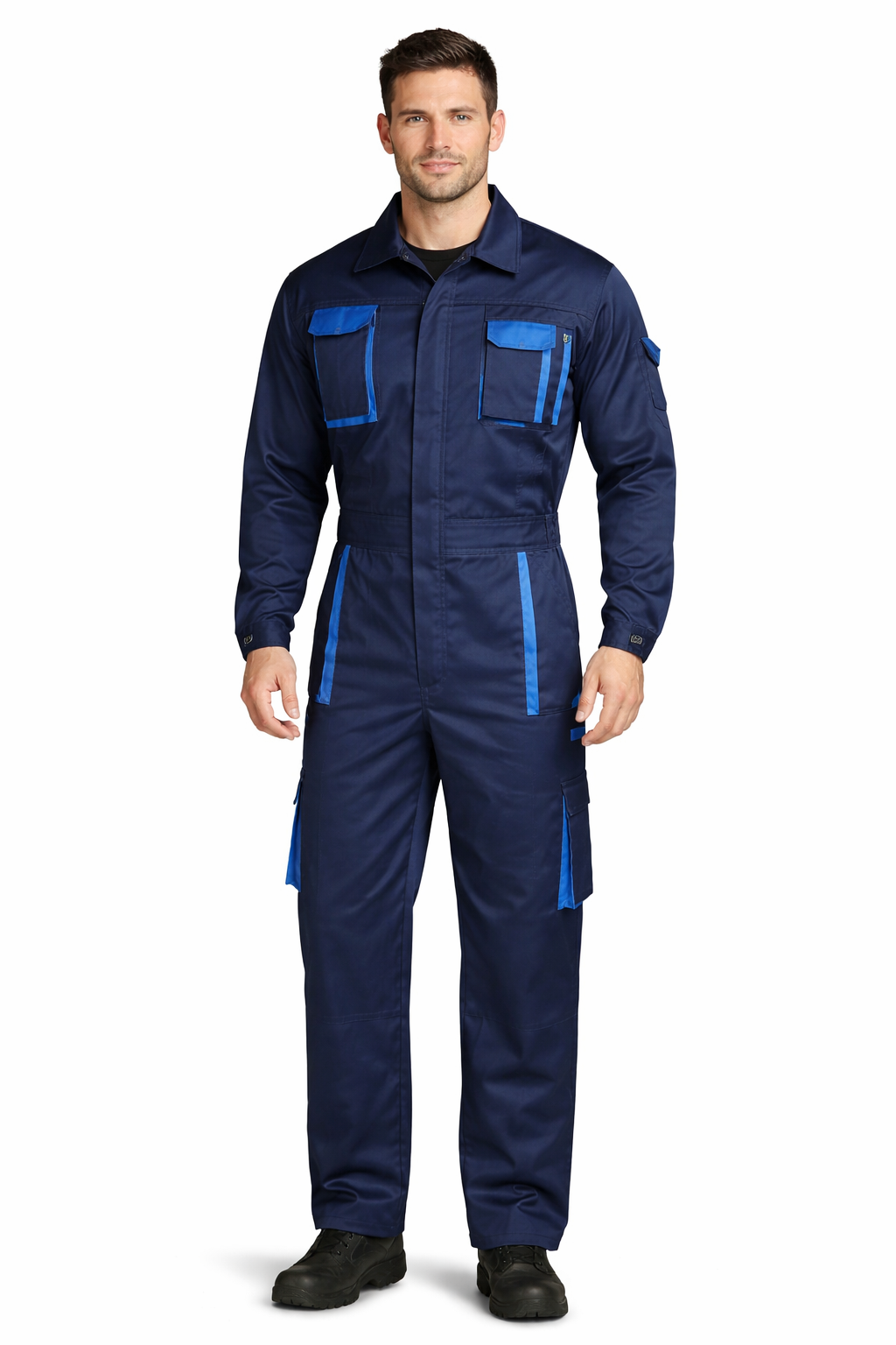 Ολόσωμη φόρμα εργασίας με πολλές εργονομικές τσέπες σε διάφορα σημεία και λειτουργικές τσέπες εργαλείων στις πλαϊνές όψεις. Σύνθεση: 65% polyester + 35% cotton, 240gr/m2.