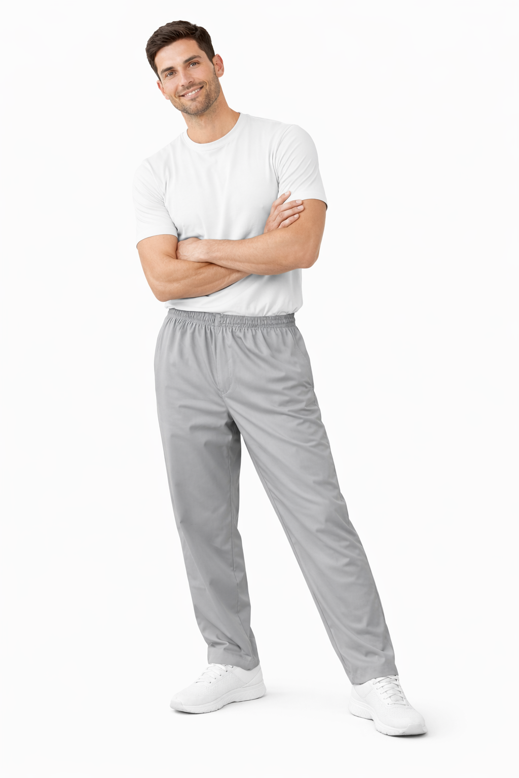 Παντελόνι με λάστιχο και εσωτερικό κορδόνι για αυξομείωση, από ύφασμα ελαφριά καπαρντίνα 65% πολ-35% βαμβ 170 γρ με δύο τσέπες μπροστά και μία πίσω, ίσια γραμμή.