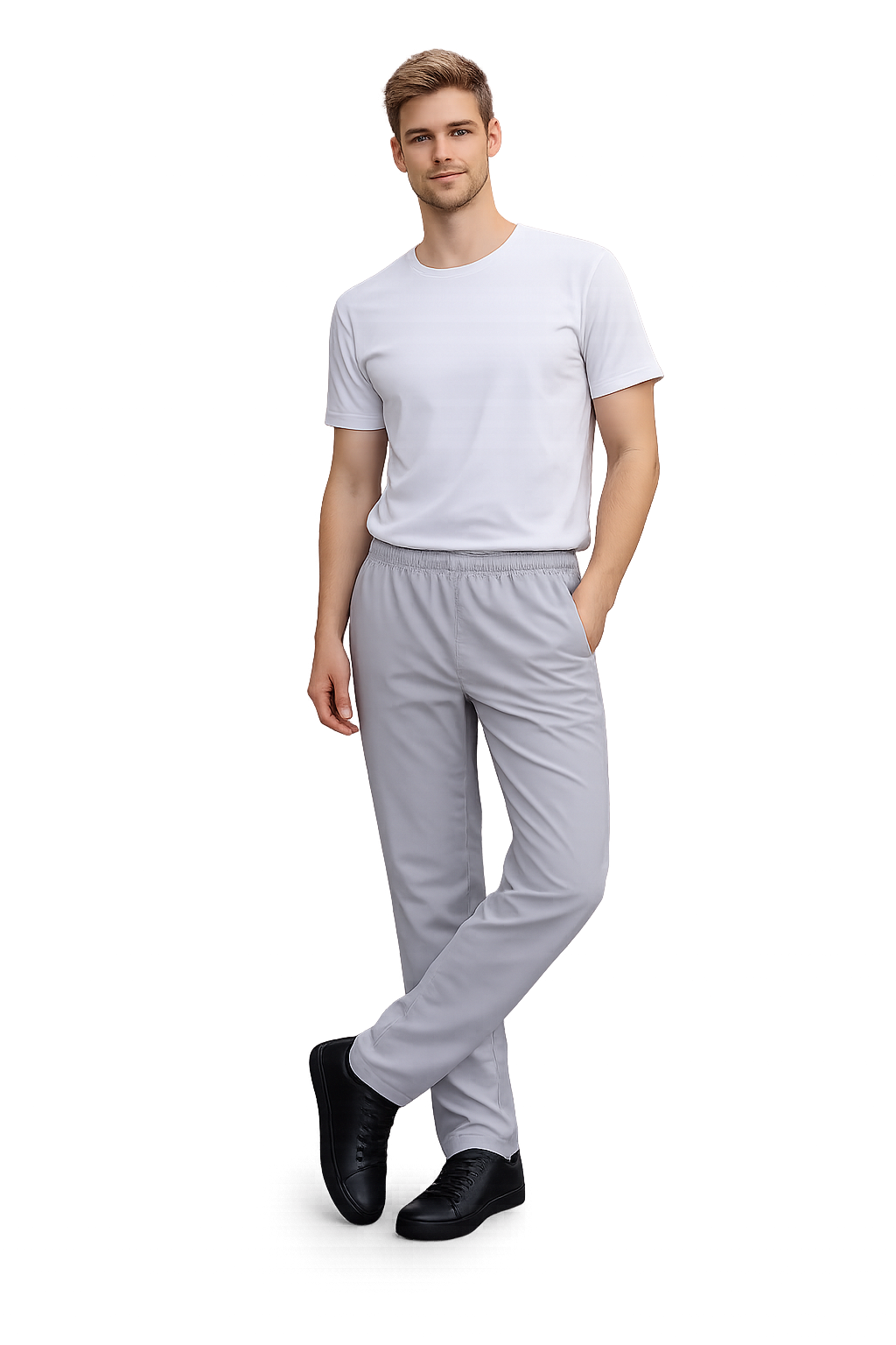Παντελόνι με λάστιχο και εσωτερικό κορδόνι για αυξομείωση, ελαφριά καπαρντίνα 65%πολ.-35%βαμβ. 165γρ. δύο εσωτερικές τσέπες, μοντέρνα γραμμή καθώς το μπατζάκι στο τελείωμα είναι πιο στενό.