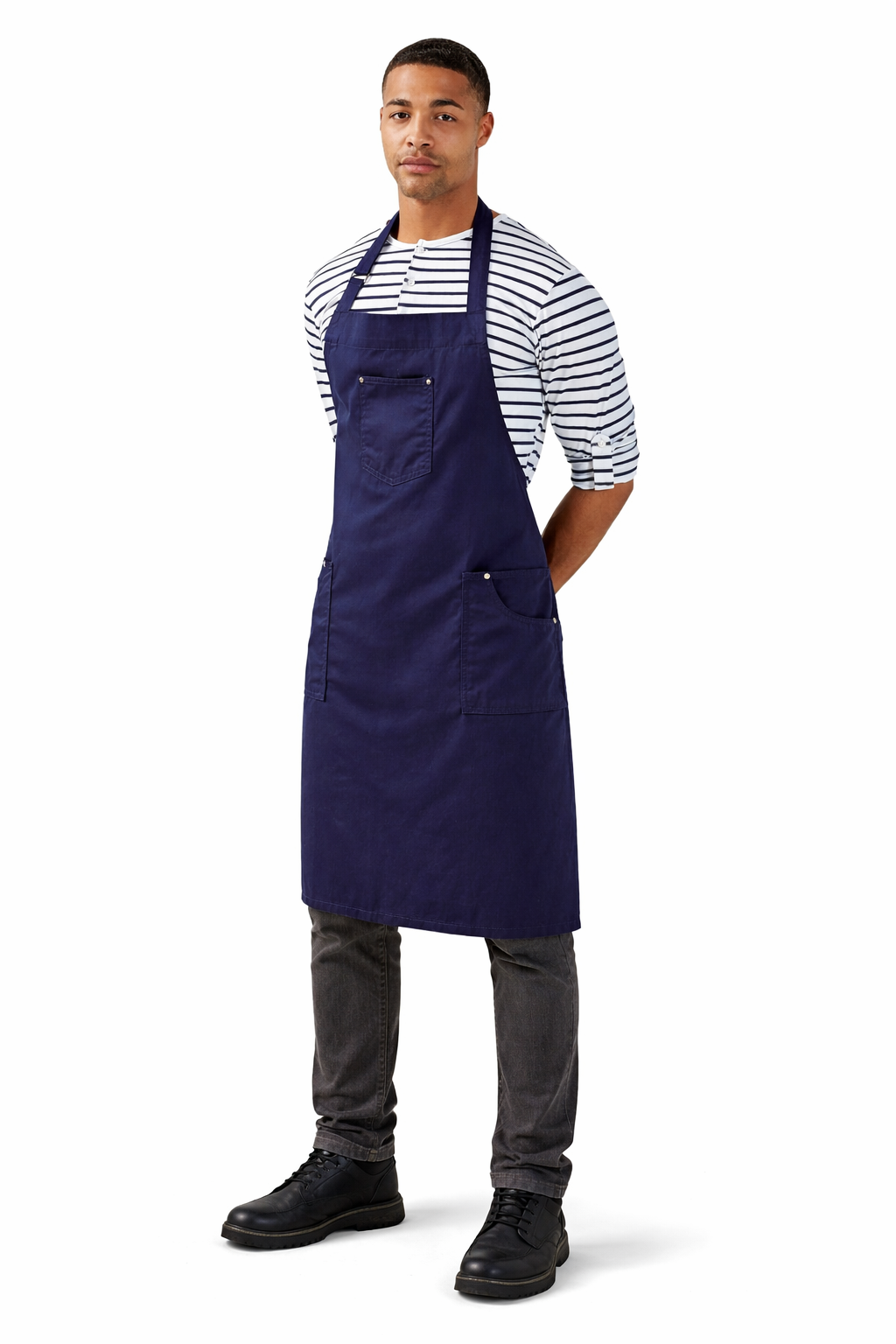 Σύνθεση : 100% Βαμβακερό Twill, 235g/m². Λεπτομέρειες: Ολόσωμη μακριά ποδιά έως το γόνατο - 1 κεντρική πάνω τσέπη (13x16εκ.) και 2 από κάτω (18x20εκ.) με λεπτομέρειες με τρουκς - Ρυθμιζόμενη στο λαιμό με μεταλλική πόρπη και κλείσιμο με κουμπί Διαστάσεις: 86 x 72εκ.