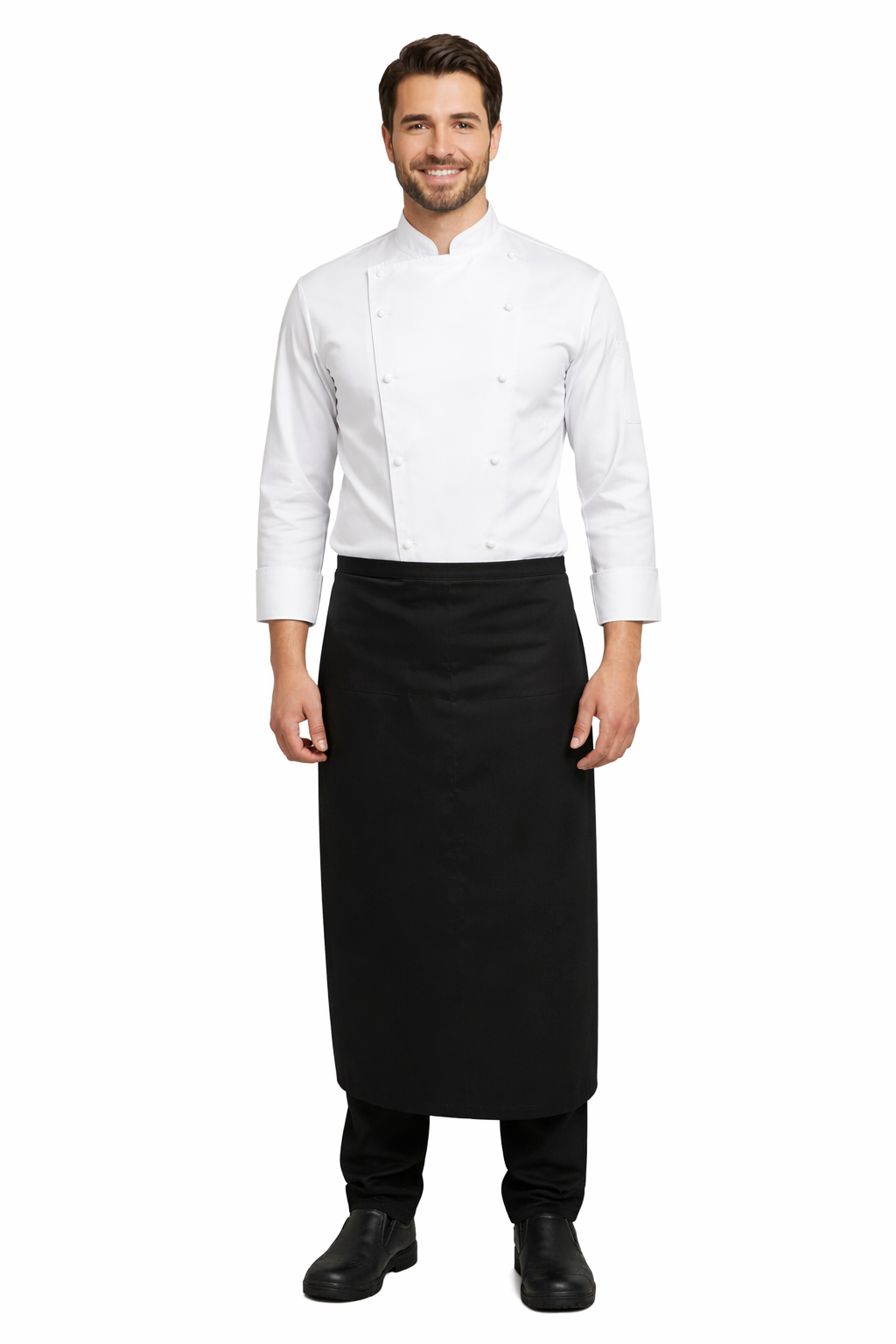 Ποδιά μάγειρα μισή, από ύφασμα καπαρντίνα 240 γρ βάρος με κάλυψη για το δέσιμο των λουριών.