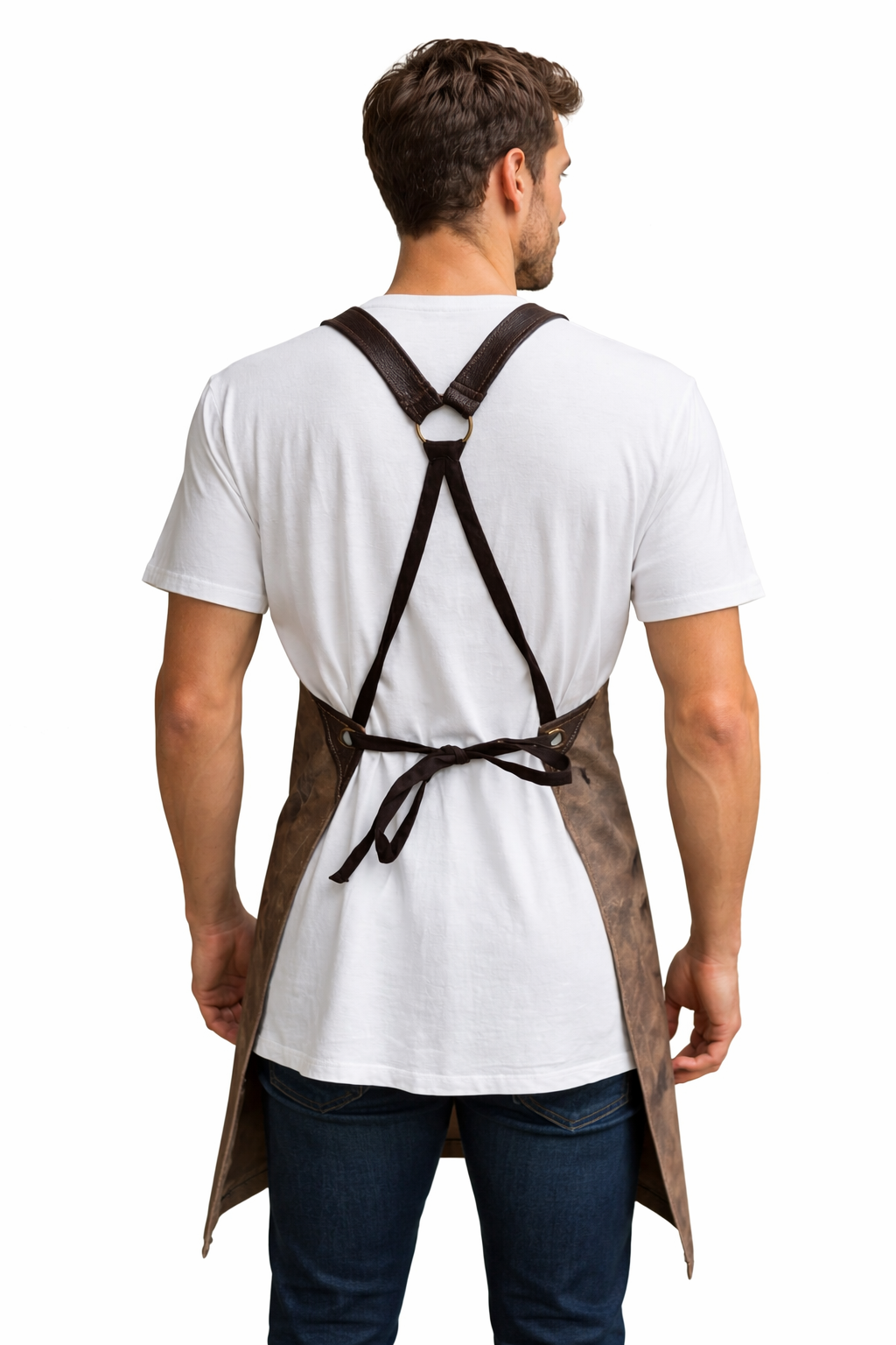 Επαγγελματική ποδιά barber, κατασκευασμένη από ανθεκτικό ύφασμα με vintage όψη. Διαθέτει ρυθμιζόμενους ιμάντες από δερματίνη με δέσιμο χιαστί στην πλάτη για άνετη εφαρμογή και σταθερότητα κατά τη διάρκεια της εργασίας. Στο μπροστινό μέρος φέρει πρακτικές τσέπες για εργαλεία, ενώ το σχέδιο/κέντημα barber προσδίδει επαγγελματικό και ξεχωριστό στυλ. Κατάλληλη για κουρεία και επαγγελματική χρήση.