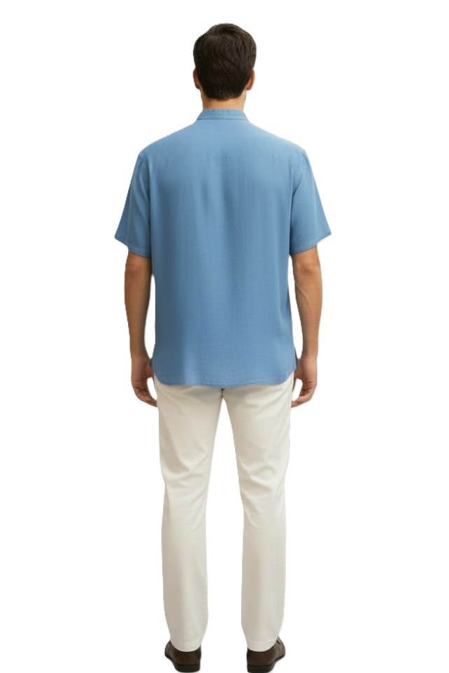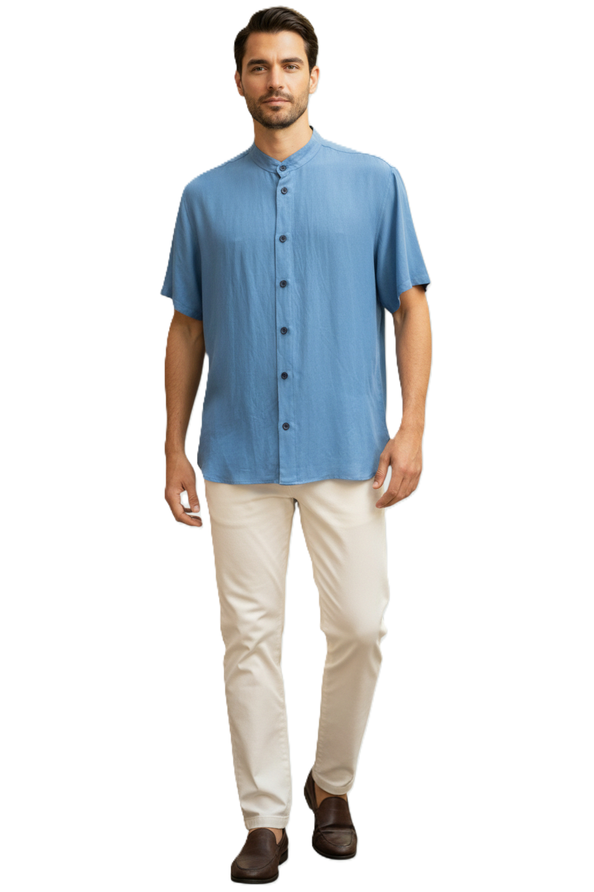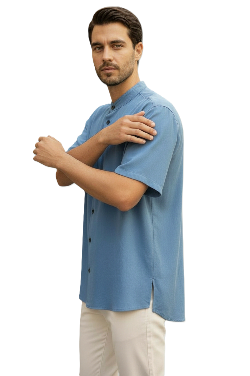 Πουκάμισο κοντομάνικο από HYBRID ύφασμα LI 38% – VI 62%, που συνδυάζει τη δροσιά του λίνου με την απαλή υφή της βισκόζης. Διαθέτει μοντέρνο Mandarin/Mao γιακά και minimal μπροστινό κούμπωμα. Η ελαφριά του σύνθεση προσφέρει άνεση και ευκολία στην κίνηση, ιδανική για τις ζεστές ημέρες.