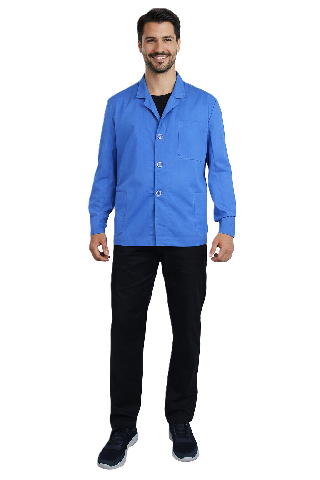 Σακάκι ανδρικό σε χρώμα μπλε ραφ με μακρύ μανίκι, πέτο γιακά, από ύφασμα ποπλίνα 150 γρ βάρος, 65/35 pol/cotton.