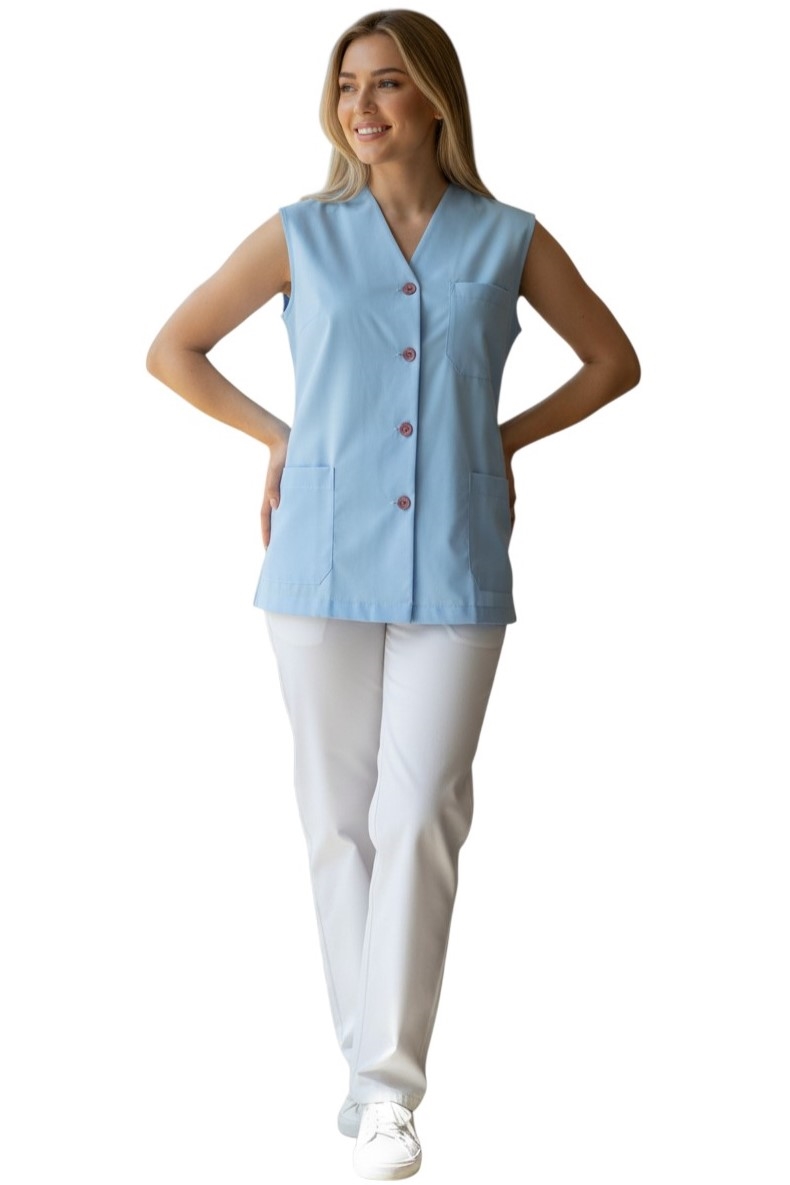 Σακάκι γυναικείο αμάνικο , χωρίς γιακά με κουμπιά από ύφασμα ποπλίνα 180 γρ βάρος.