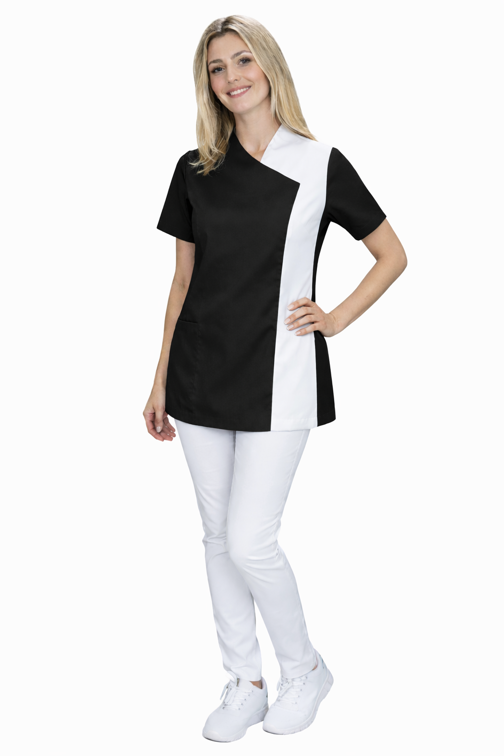 Σακάκι γυναικείο μεσάτο με διχρωμία, κοντό μανίκι, από ύφασμα καπαρντίνα ελαφριά 165 γρ βάρος 65/35 pol/cotton.