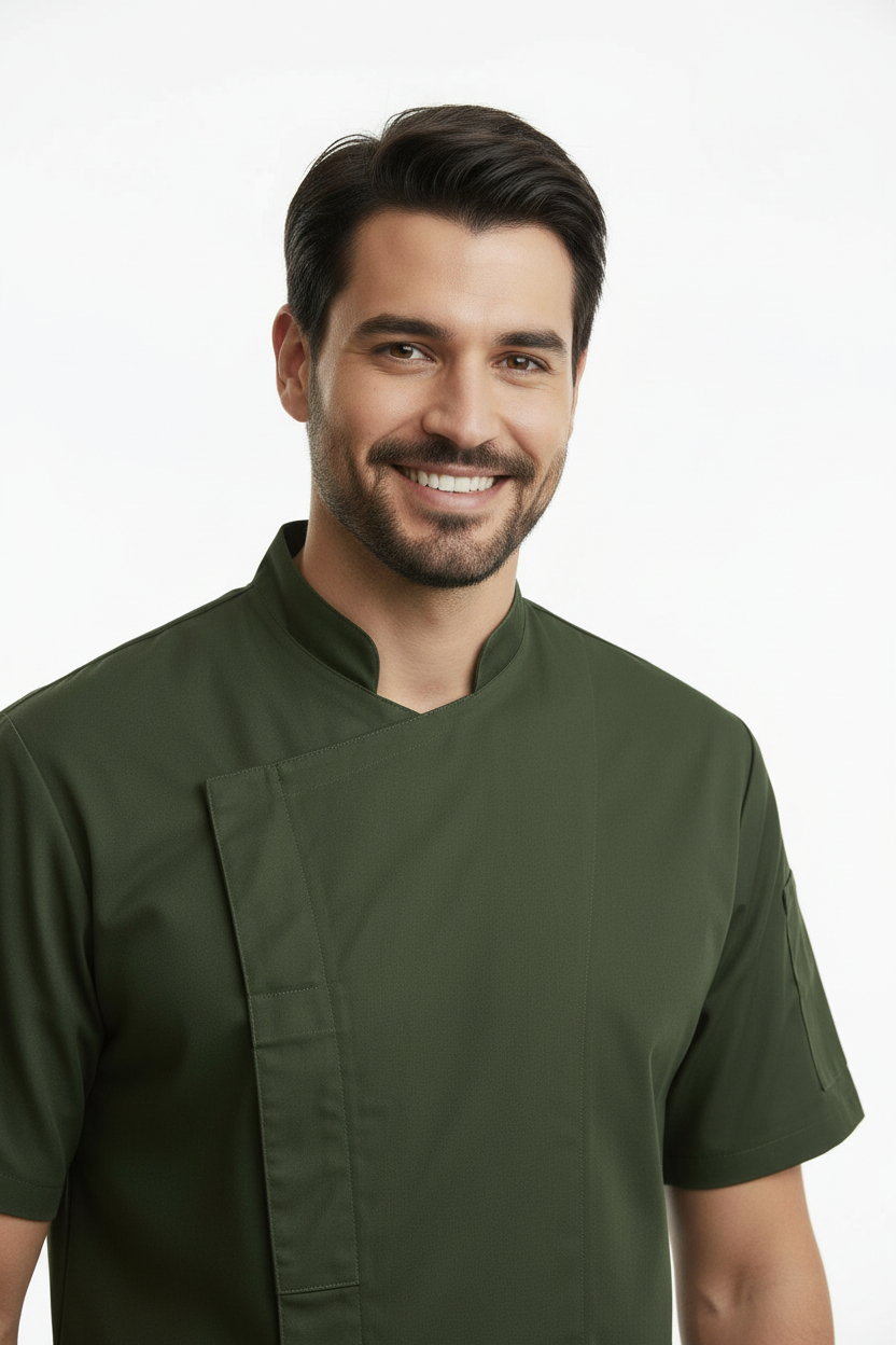 Σακάκι από ύφασμα ελαστική καπαρντίνα 180 γρ βάρος 97%βαμβ.- 3%ελαστάν , κλείσιμο με κόπιτσες, κρυφή πατιλέτα, με ελαστικό αναπνέον ύφασμα στην πλάτη για άνεση στις κινήσεις. Τσέπη στο αριστερό μανίκι και μικρό στο μπροστινό μέρος.