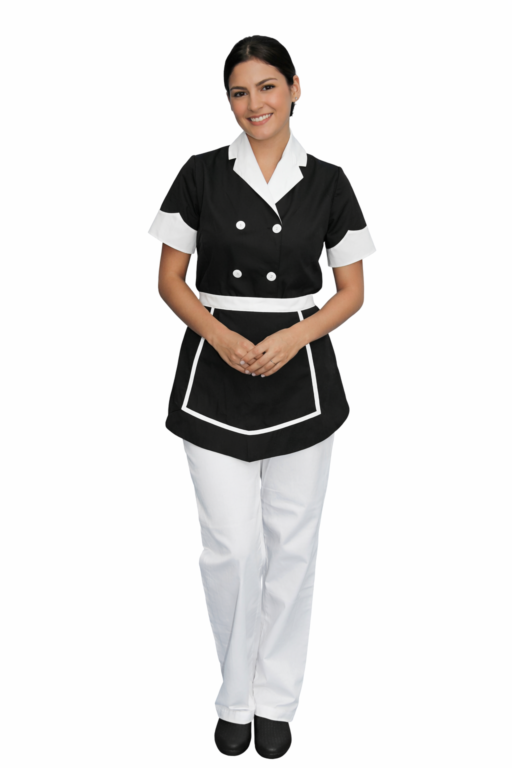 Σετ καμαριέρας , παντελόνι με λάστιχο , σακάκι σταυρωτό και ποδιά.