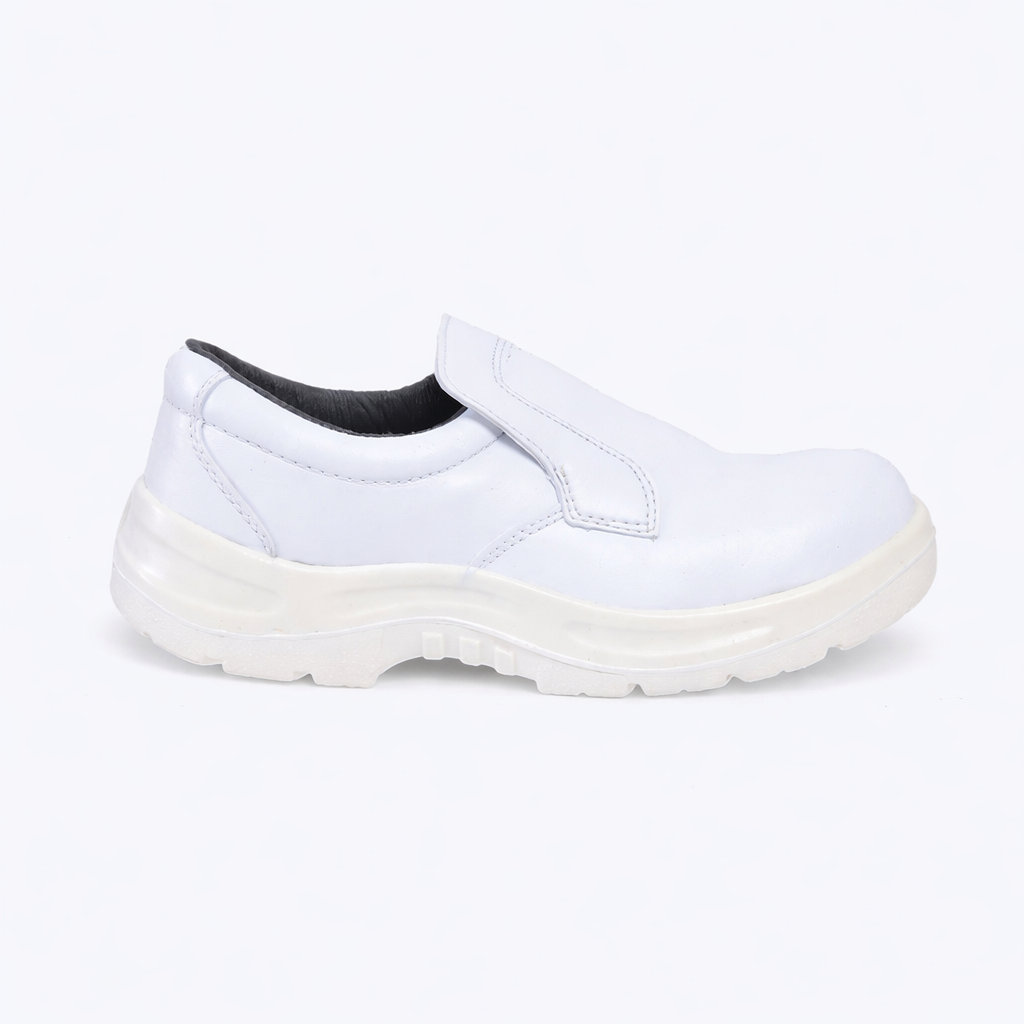 Σκαρπίνι ασφαλείας λευκά, δερμάτινα, υψηλής υγιεινής, ανατομικά, με αντιβακτηριδιακή εσωτερική σόλα.