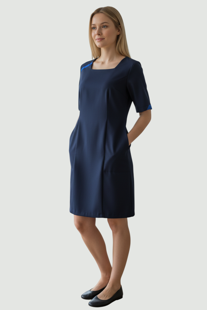 Φόρεμα γυναικείο με διχρωμία σε μανίκι και στήθος , το συγκεκριμένο έχει γίνει σε ύφασμα TR 195gr βάρος. Κατόπιν παραγγελίας μπορείτε να διαλέξετε το ύφασμα και το χρώμα που θέλετε .
