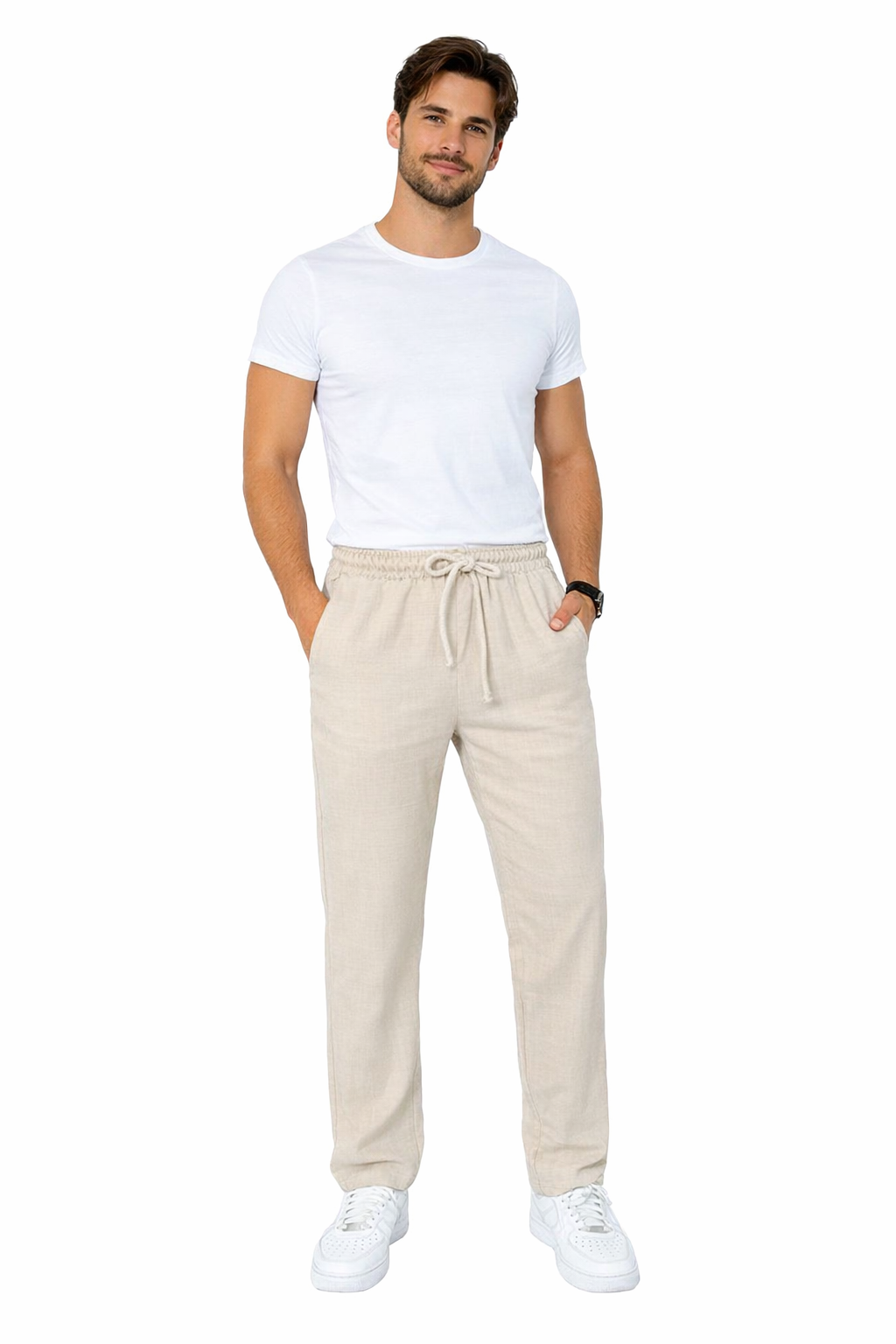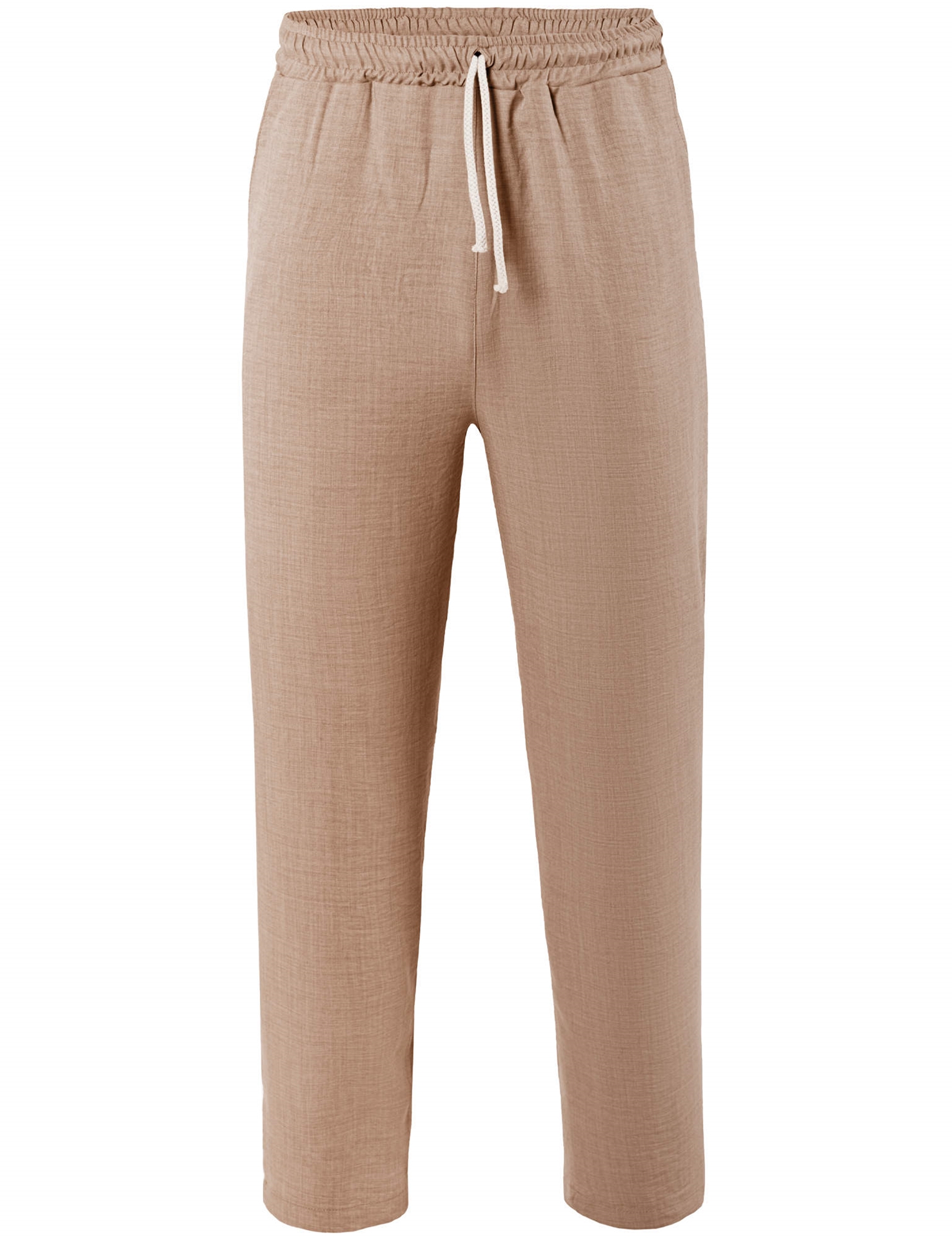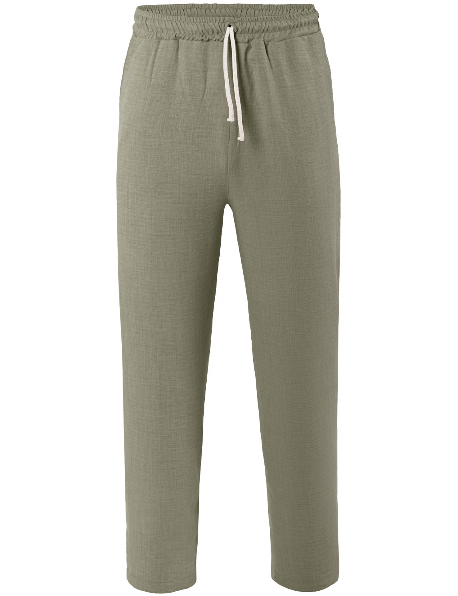 Unisex παντελόνα με λάστιχο στη μέση και κορδόνι, 2 κοφτές τσέπες στα πλαϊνά και 2 εξωτερικές τσέπες πίσω με κουφωτές πιέτες. Βάρος:140gsm | Σύνθεση:100% polyester αναπνέον. “air washed linen look".